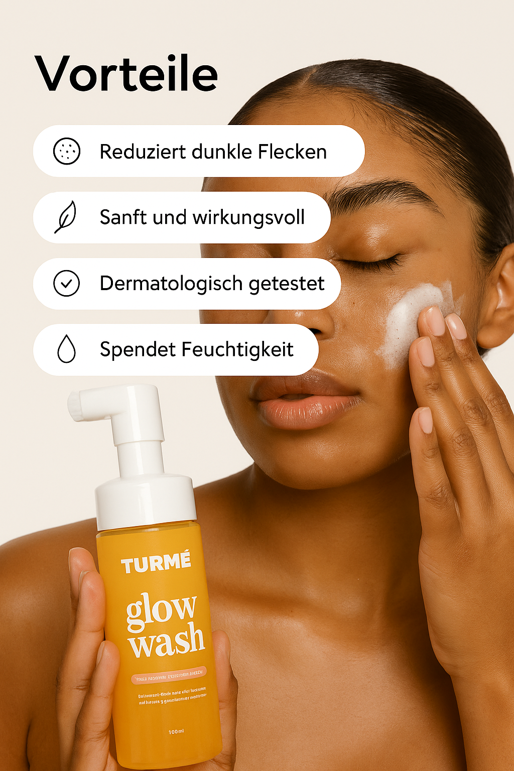 Das TURMÉ Cosmetics Glow Wash reinigt Ihre Haut porentief, ohne sie auszutrocknen – für ein sichtbar ebenmäßigeres Hautbild, weniger Unreinheiten und spürbar mehr Glow.